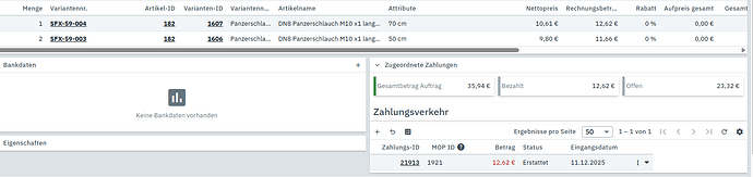 ich hatte 3 Artikel in der Gutschrift drin, aber nur 1 Artikel wurde zurück gezahlt.