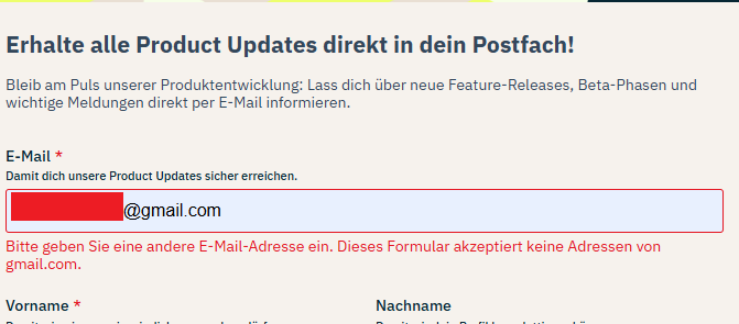 Pech hat man nur wenn man eine @gmail.com Emailadresse nutzen möchte, denn die wird nicht akzeptiert.