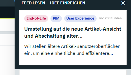 Die veraltete Legacy-Artikel-UI (in neueren Systemen PID > 67743 bereits nicht mehr verfügbar) wird eingestellt. Gleichzeitig wird die neue Artikel-UI für alle Systeme veröffentlicht.