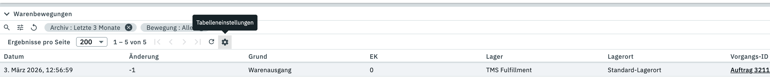 du kannst dir bei den Warenbewegungen über das Zahnrad in der Tabelle die Vorgangs-ID mit anzeigen lassen, dass ist dann ein klickbarer Link, der z.B. zu einem Auftrag verlinkt.