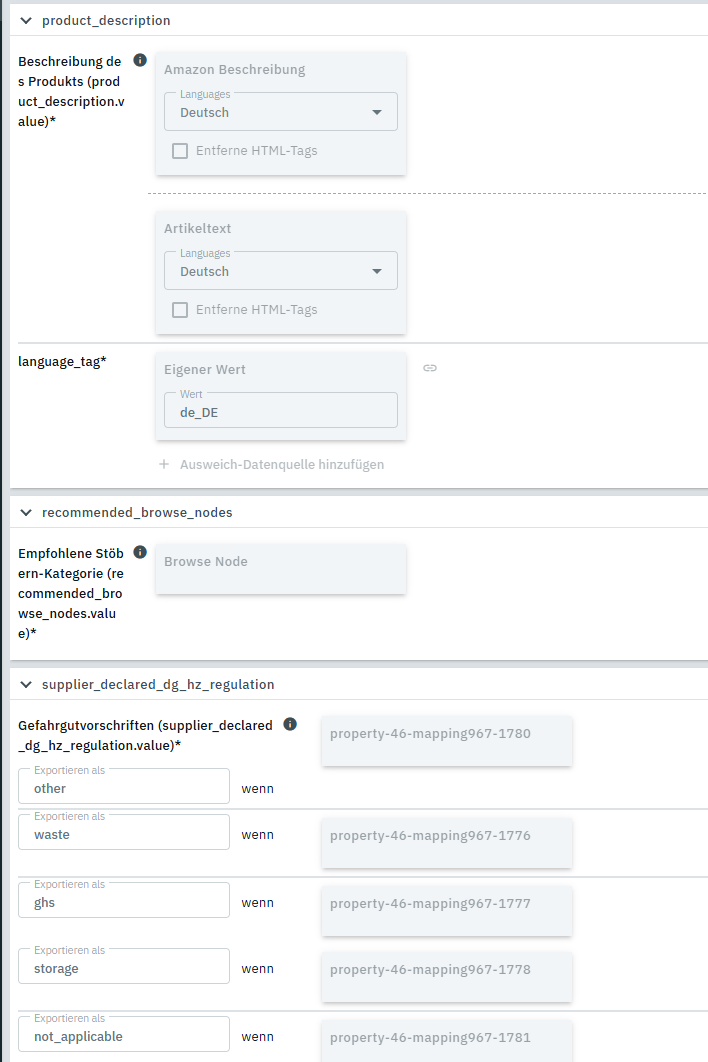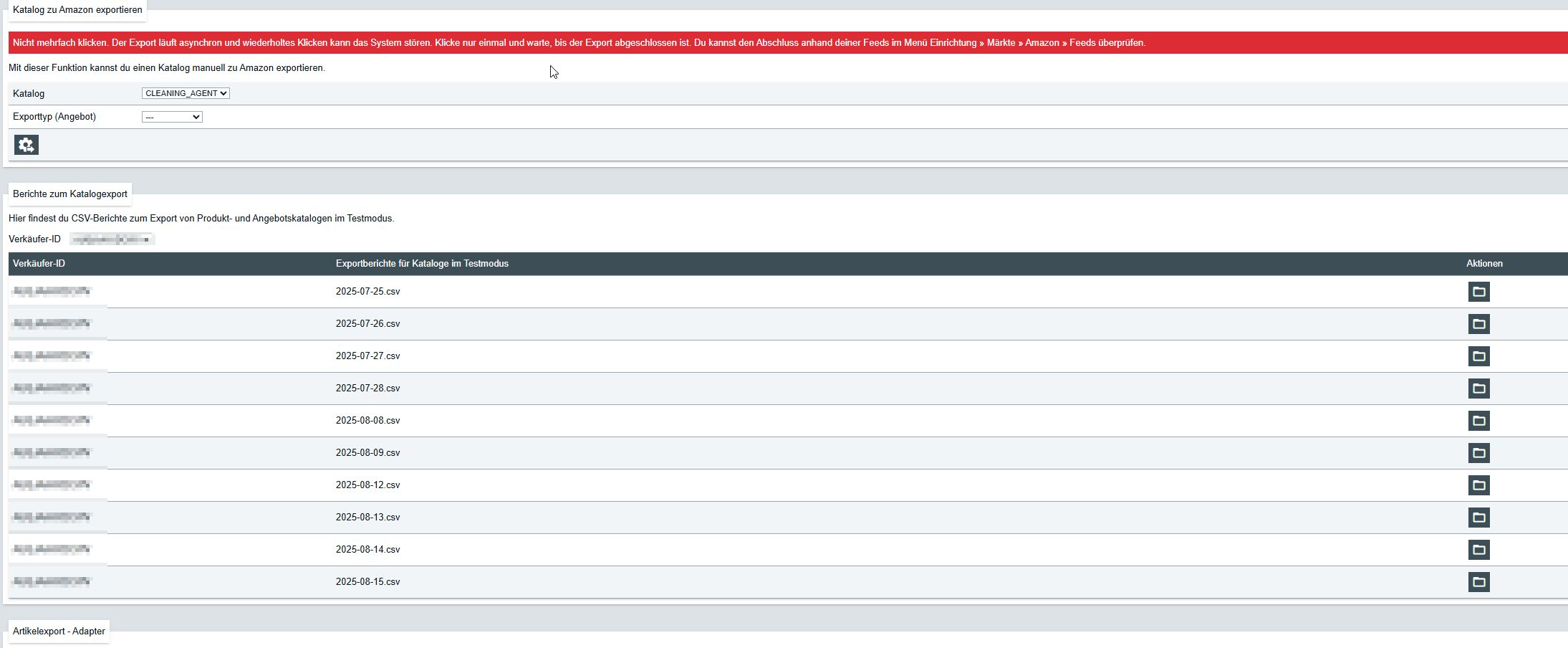 ich komme nicht mehr weiter. Ich habe damit begonnen, erste Produktkataloge für Amazon anzulegen. Hierfür habe ich für mehrere Produkttypen erst eine Channel Map erstellt und dann die ersten beiden Kataloge angelegt.