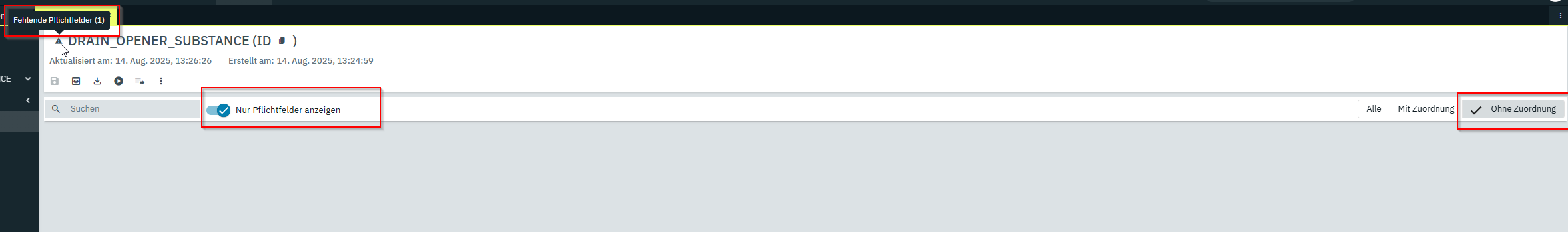 Obwohl alle Pflichtfelder gemappt und zugeordnet sind, erhalte ich jedoch weiterhin folgende Warnung: