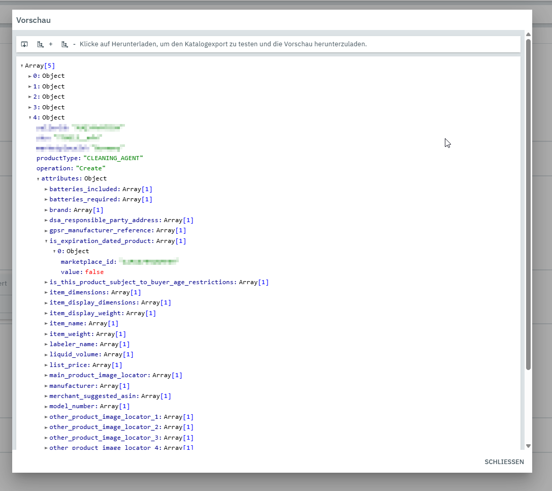 Bzgl. der Überprüfung der Fehler im eigentlichen Katalog nutze ich aktuell die Katalog-Vorschau. Diese spuckt die ersten 5 Varianten des Systems aus, mit denen kann man dann testen ob Zuordnungen überhaupt klappen bzw. was in das Array geschrieben wird. Kann man sich als .json auch herunterladen.