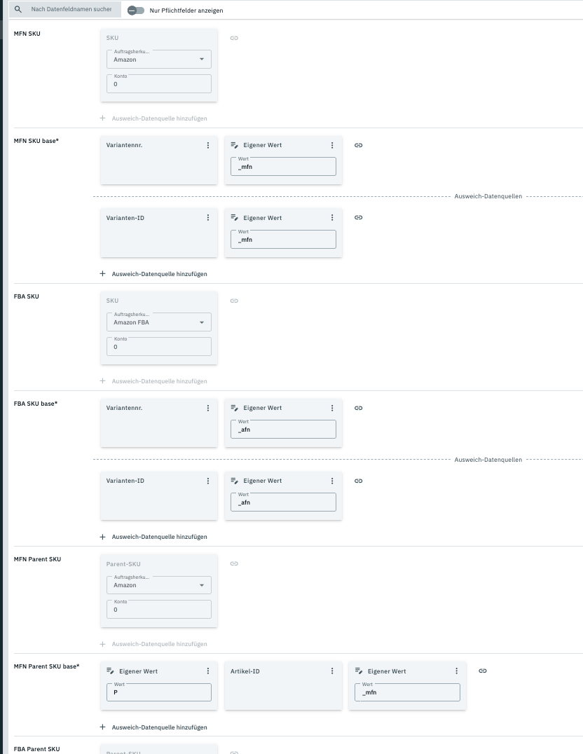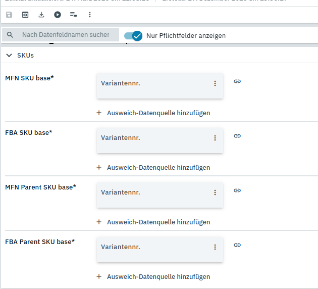 Du gibst ja nur ein, was Plenty für Felder für die SKUs nutzen soll, wenn es noch keine SKU/ ParentSKU gibt.