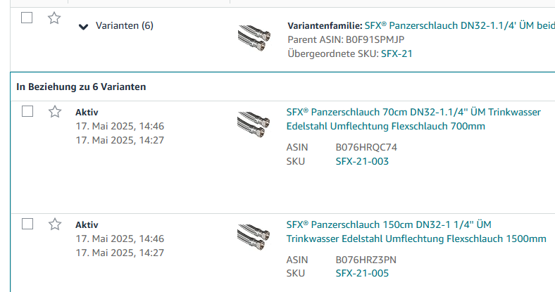 MFN und FBA SKU / ParentSKU sollten sich schon unterscheiden.