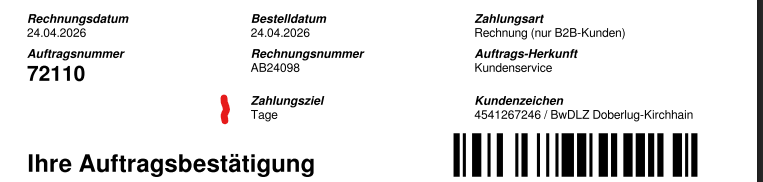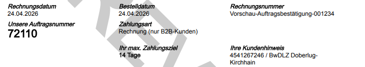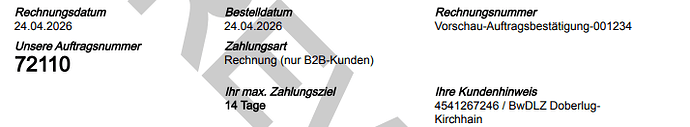 bei dem PDF (Auftragsbestätigung) wird das Zahlungsziel in Tagen nicht (!) mit ausgegeben - müsste es aber?