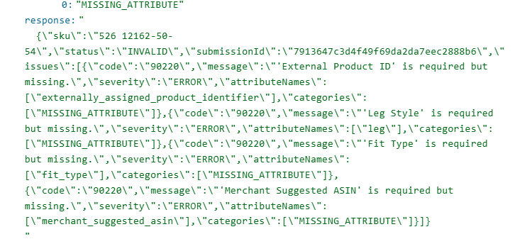 Einrichtung > Märkte > Amazon > Datenaustausch > Datenexport > Bereich > Berichte zum Katalogexport > auf den Order hinter einem Datum klicken. Da hast du die Fehler in einer CSV Datei.
