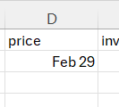 Statt z. B. 2,29 erscheint Feb 29 in der price-Spalte.