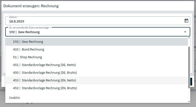 Die zusätzlich, zur in diesem Fall greifenden Vorlage, angezeigten Dok Vorlagen greifen doch sowieso nicht? Weil sie zB für eine andere Kundengruppe konfiguriert sind.
