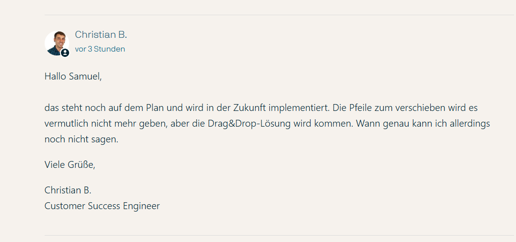 das Anordnen und Ändern der Reihenfolge der Bilder in der neuen Artikel-UI ist meiner Meinung nach absolut schlecht umgesetzt. Ich empfinde es als einen absoluten Krampf per Positionsnummer die Reihenfolge zu ändern.