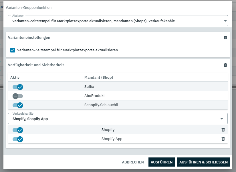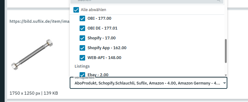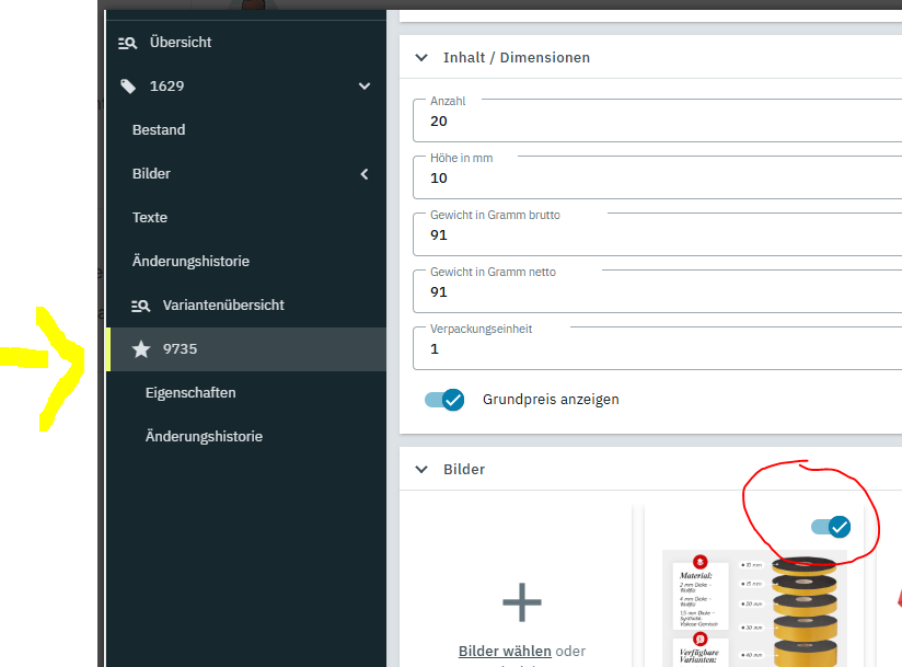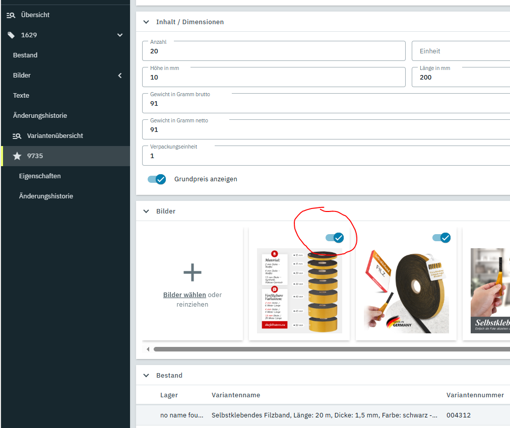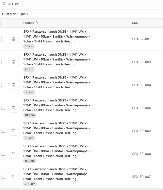 du bist da in der Ansicht vom Artikel, da kannst du die nicht für die Variante aktivieren. Du musst links im Bereich die einzelnen Varianten aufrufen (bei dir die unterschiedlichen Längen vom Schlauch). Da siehst du den Haken zum Aktivieren/Deaktivieren.