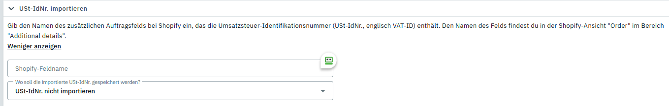 um den Shopify-Feldname für die USt-IdNr. raus zubekommen, brauch ich da dafür eine Plugin/App in Shopify - da ich diese ja importieren will: