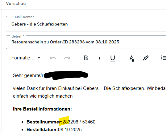 Leerzeichen die im EMailBuilder vor Variablen und Formatierung gesetzt sind werden in der Vorlagen Ansicht nicht mehr korrekt ausgegeben bzw. es wird kein Leerzeichen ausgegeben.