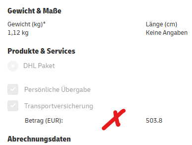 Die Transportversicherung wird nicht auf dem Label ausgewiesen. Du siehst sie aber im Geschäftskundenportal. Der Betrag ist der Nettopreis.