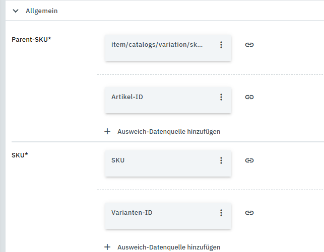Ich habe einige Test ohne Erfolg durchgeführt. Zum Beispiel die Parent-SKU von der ersten Variante bei der zweiten Variante hinterlegt.