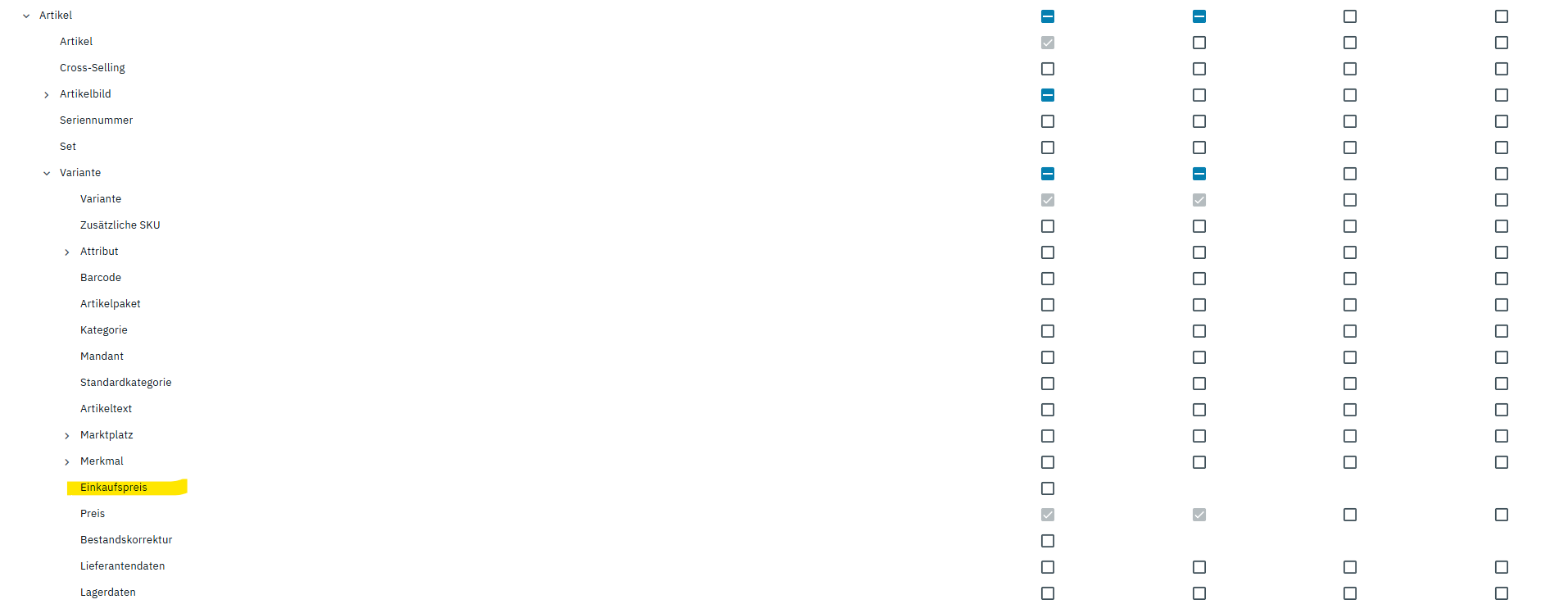 Heute ist in meinem Benutzerkonto aufgefallen, dass dieses Feld “EK netto” in sämtlichen Artikeln verschwunden ist: