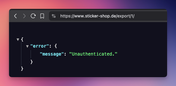 Prüf nochmal, dass du die Export-URL welche du verwendest richtig ist, vor allem die ID des Exports (dass dieser noch in deinem System existiert) und den Token.