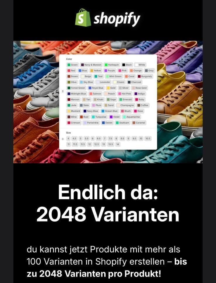 ich starte gerade den aller ersten Shopify-Test und bin auch gleich an dem Limit mit den Varianten hängen geblieben.