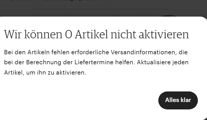 Bei uns werden nach wie vor keine Listings bei etsy gestartet. Alle Artikel die gestern eingestellt wurden sind bei etsy nicht zu finden. Ebenso alte Artikel, an denen ich den Export teste. Ich finde aber auch keinen Fehler mehr bezüglich „All offerings need readiness state“. Es sieht einfach so aus, als würden die Artikel grossteils gar nicht exportiert, bzw. der Versuch unternommen.