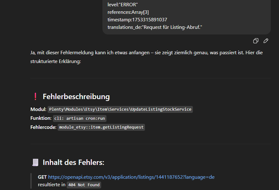 Dann hab ich nochmal im Artikel alles überprüft und da ist mir aufgefallen das Etsy nicht bei der Verfügbarkeit gelistet war (nur Etsy not used) - also kann es ja auf keinen Fall davon gekommen sein.