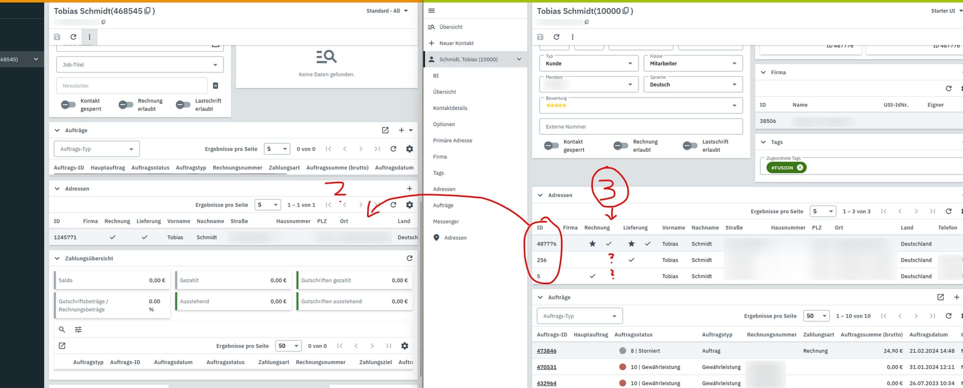 Die unteren beiden Adressen aus dem rechten Beipiel sind einfach überhaupt nicht im Export enthalten: