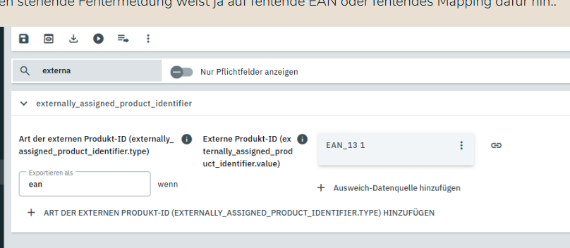 EAN ist aber am Artikel vorhanden, hat die richtige Anzahl an Ziffern und auch kein Leerzeichen. Ist auch gemapped.. siehe ganz unten