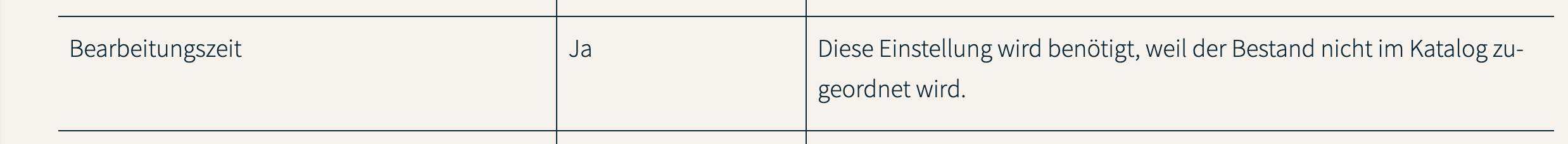 In diesem Fall bleibt das Feld „Bearbeitungszeit“ einfach leer! Der Wert „5” ist nur ein Beispiel, das zeigt, dass du keine Angabe gemacht hast. Ich glaube, es wird genauso wie der Bestand übertragen, aber ich bin mir nicht sicher.