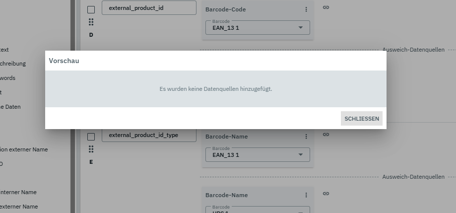 hat noch jemand den Fehler beim Katalog erstellen, dass keine Datenquellen hinzugefügt wurden, obwohl diese vorhanden sind.. (siehe Screenshot) ?