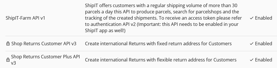 Die API Freischaltung im bei GLS steht bereits auf Enabled, siehe: