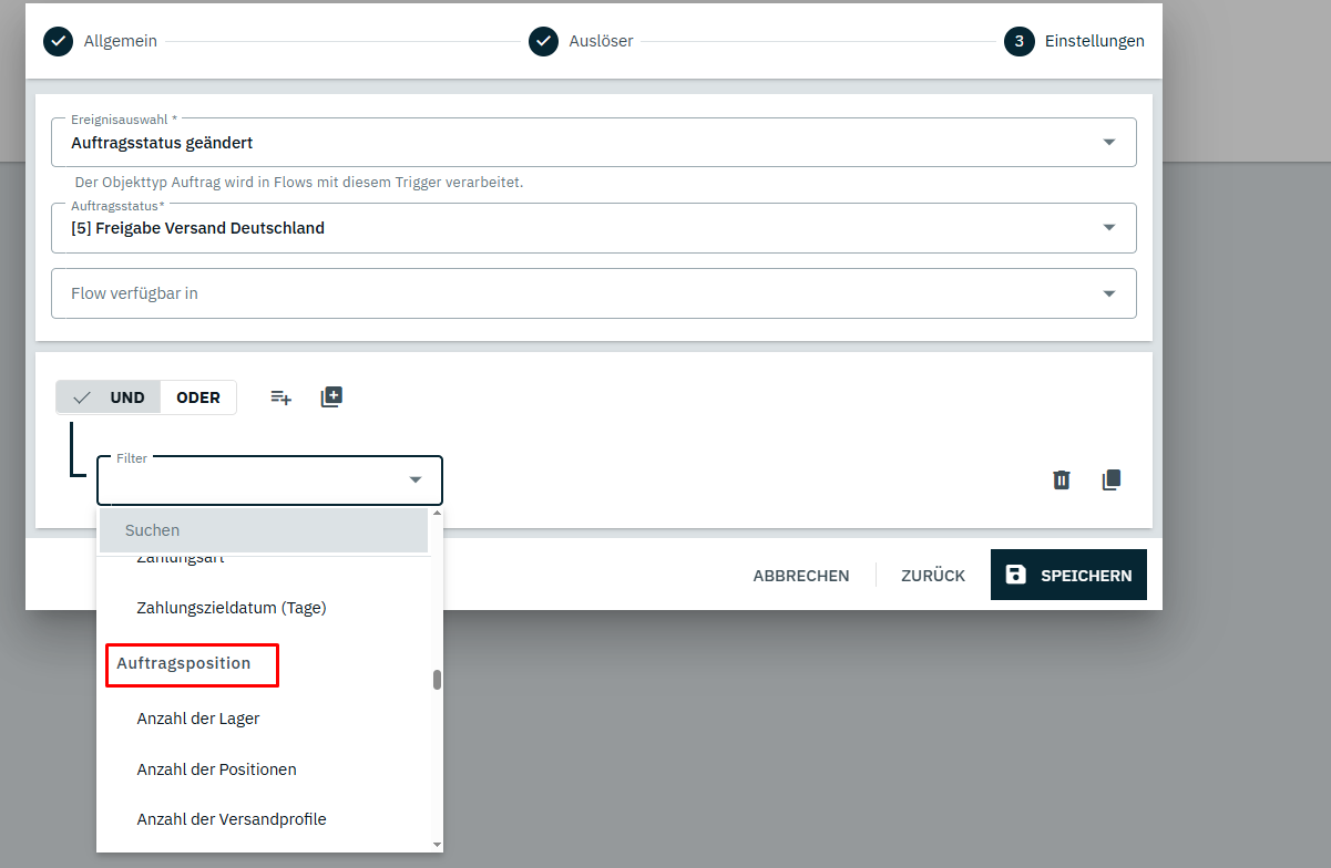 Über die EA nutzen wir das aktuell auch, aber da haben wir ein Problem. Wir haben viele Aufträge, wo Artikel mit unterschiedlichen TAGs dann drin sind. Ich war auf der Suche nach einer Lösung, wo wir einstellen können “ausschließlich Artikel mit TAG xy” oder “ausschließlich Artikel mit Artikeleigenschaft xy”, aber das gibt es bei EA nicht. Daher dachte ich, ich probiere es mit Flow.