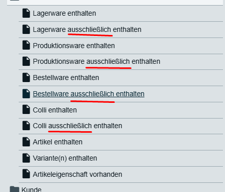 Um die Aufteilung der Aufträge auf die Versanddienstleister zu optimieren, wäre die Möglichkeit in der EA „Eigenschaft ausschließlich enthalten“ perfekt gewesen. Das habe ich schon mehrmals bei Plenty thematisiert, aber leider erfolglos. Mit dem Plugin hätte es mit "CustomEvents: Artikel enthält ausschließlich Tag Filter XY auch bestens funktioniert. In beiden Fällen muss im Falle eines Bundles die Eigenschaft/Tag des Bundleartikels priorisiert werden und nicht die der Artikel, die im Bundle enthalten sind.