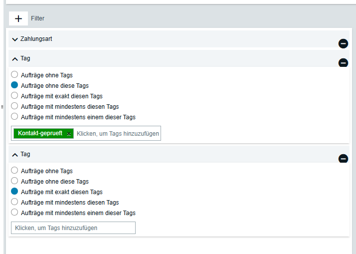 Ein Ereignis - zwei Filter: ohne diese Tags, exakt mit diesen Tags