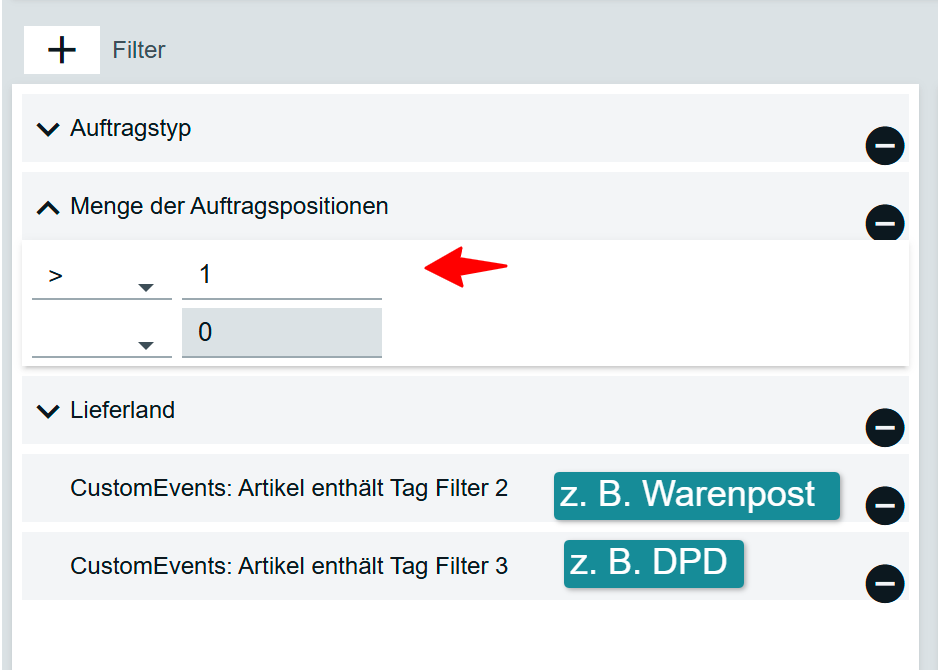 und wenn dabei eine Positon mit dem Artikel-Tag DPD und Warenpost dabei ist, dann verschiebe nach Status DPD