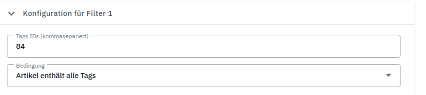 In diesem Fall wird das Ereignis greifen, da ein Artikel mit der Tag-ID 84 enthalten ist.