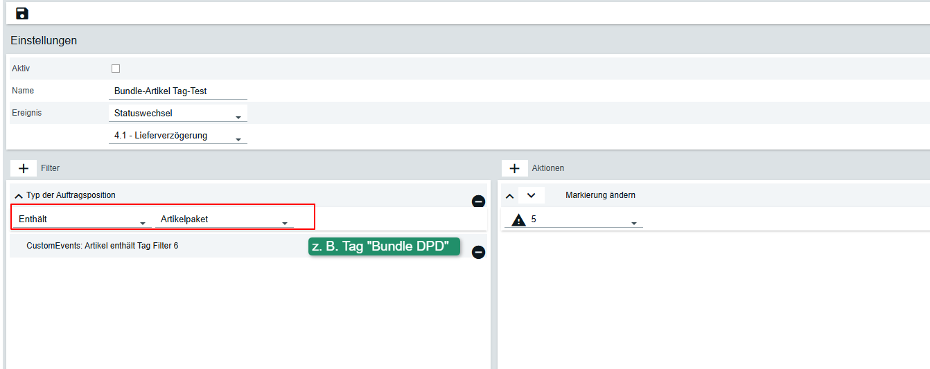 Man könnte für Bundle-Artikel einen eigenen Tag, beispielsweise „Bundle DPD“, erstellen und anschließend danach filtern. Dadurch würde dieser Tag nicht mit dem Tag „DPD“ am Stammartikel kollidieren.