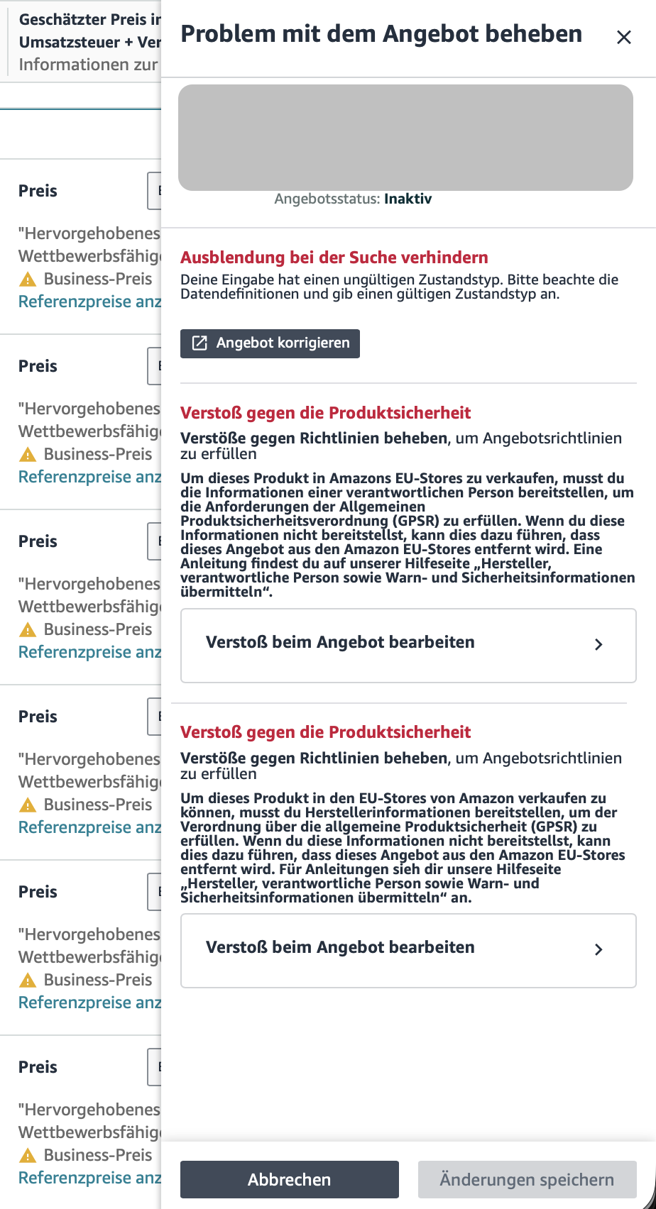 aktuell haben wir sehr viele Angebote bei Amazon die wie im Screenshot zu sehen, GPSR-Angaben bestätigt werden müssen, obwohl wir über den Katalog sämtliche hier notwendige Daten übermitteln.