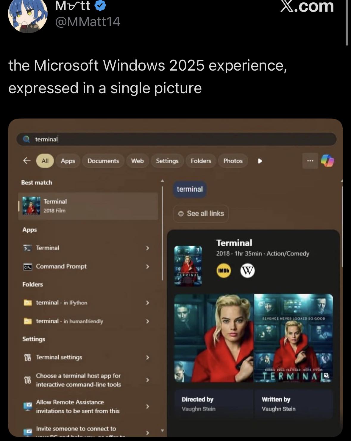 Bei mir wĂŒrde wahrscheinlich die Tom-Hanks-Variante auftauchen. Aber wer wĂŒrde das terminal schon so öffnen?
