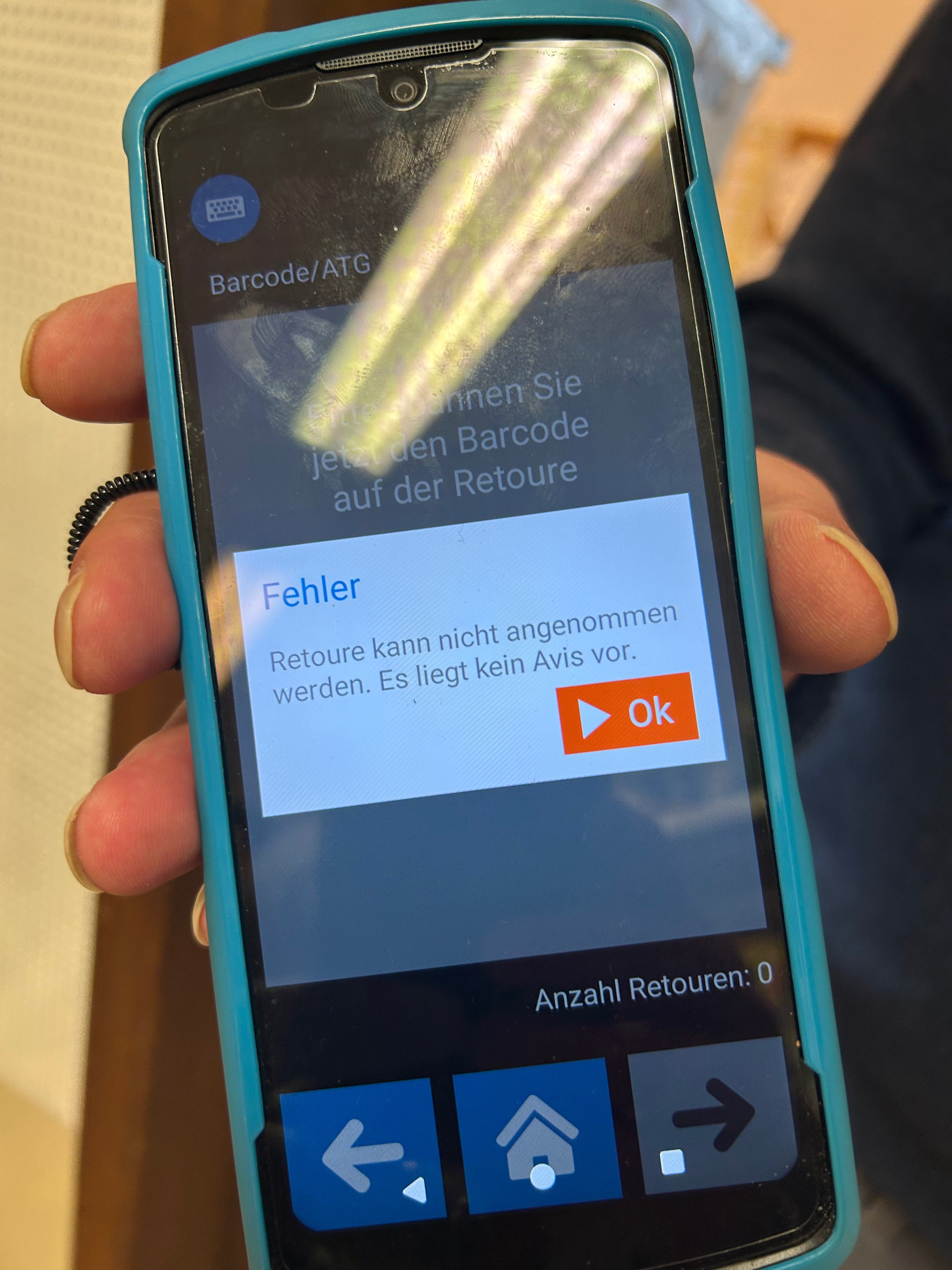 „Retoure kann nicht angenommen werden. Es liegt kein Avis vor.“