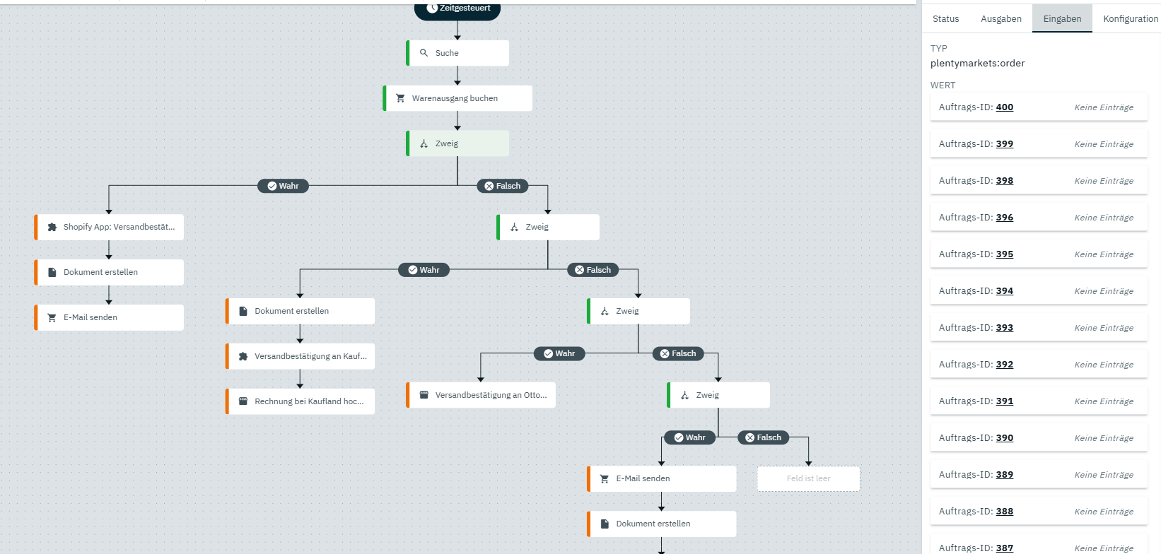 deine Theorie, dass nur ein Auftrag (der Erste) überprüft wird kann ich widersprechen, da es aktuell zu 95% Shopify Aufträge sind. Somit haben wir bei einigen Flows nur Aufträge von Shopify.