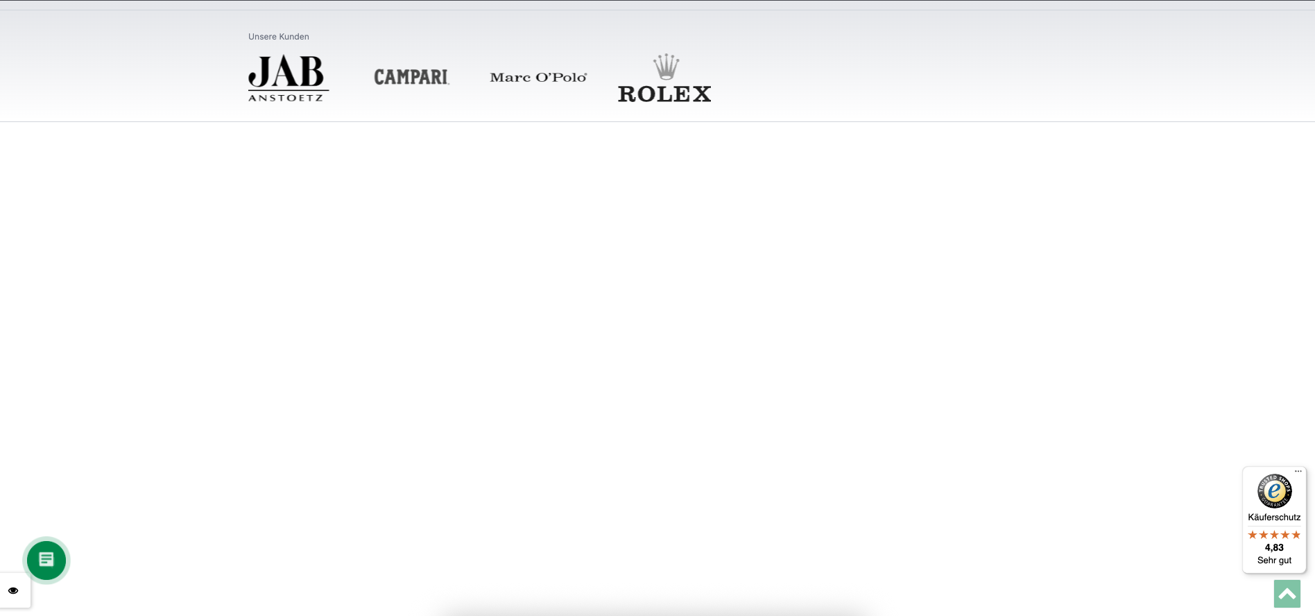 Wenn ich im ShopBuilder HTML-Code einfüge, wird das zugehörige JavaScript offenbar nicht korrekt geladen. Im Screenshot erkennt man den weißen Bereich unter den Logos, der vermutlich durch die fehlende Funktionalität entsteht: