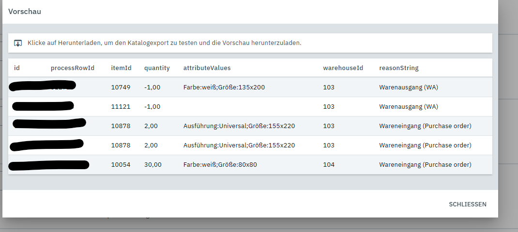 Dabei stoße ich jedoch direkt auf das erste Problem: Im Katalog kann ich die Varianten-ID nicht exportieren.