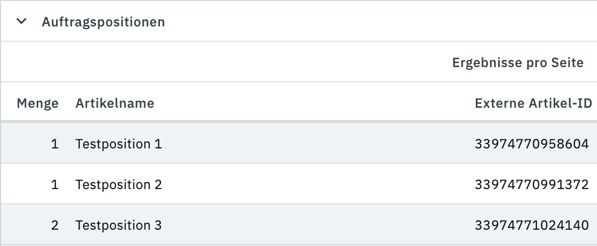 In den Auftragspositionen ist die Externe Artikel-ID jedoch vorhanden und gefüllt: