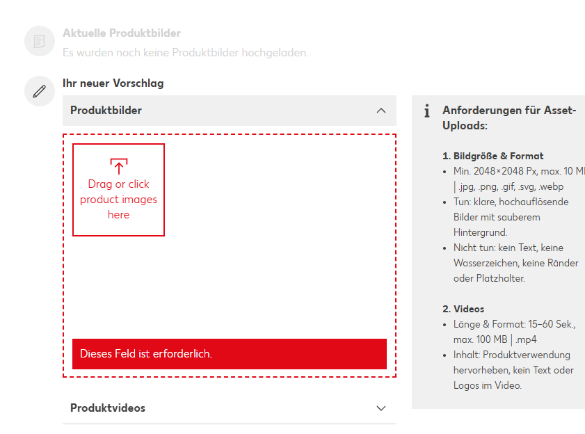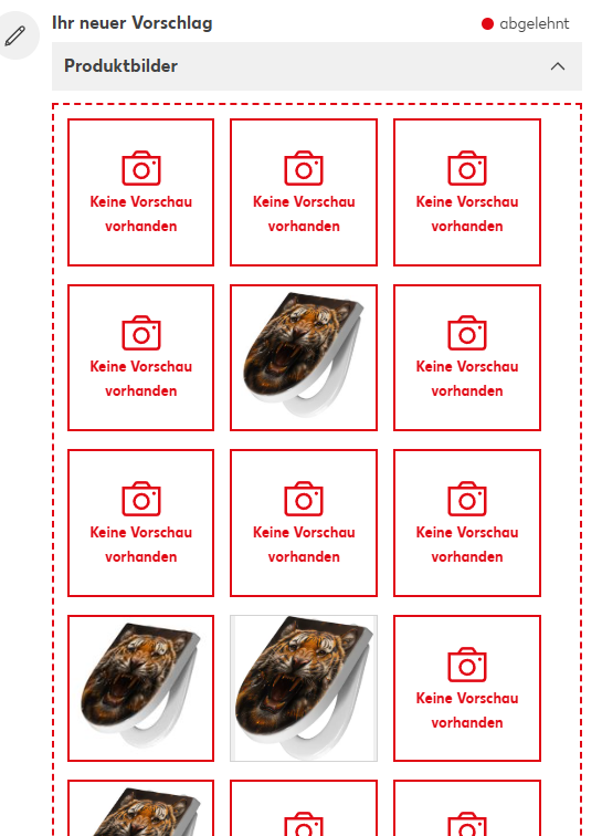 Ja, die Bilder sind alle dort, aber abgelehnt. Plenty vermutet mal dies mal jenes. Nachdem Ich gebeten wurde einen Katalog neu anzupassen mit Bildinformationen Übertragung (Alt Text) sieht es nun noch komischer aus im Kaufland Backend.