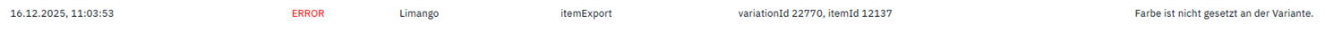 Die Farbe „Grau“ ist als Eigenschaft korrekt angelegt und mit der Variante verknüpft. Auch in deiner Exportdatei ist der Artikel vollständig gepflegt – Spalte 26 (Farbe) ist korrekt befüllt.
