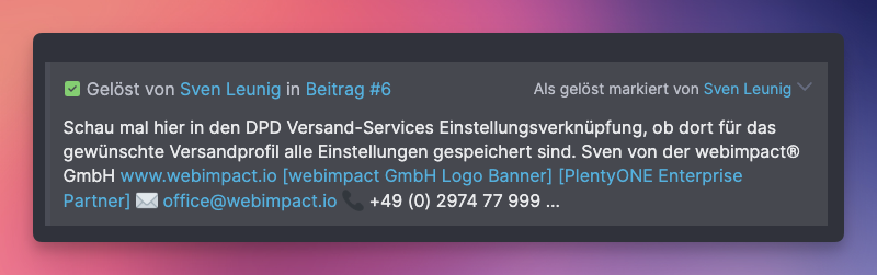 wir haben das Forum aktualisiert, und das Feature eingefügt dass Beiträge als Lösung markiert werden können.