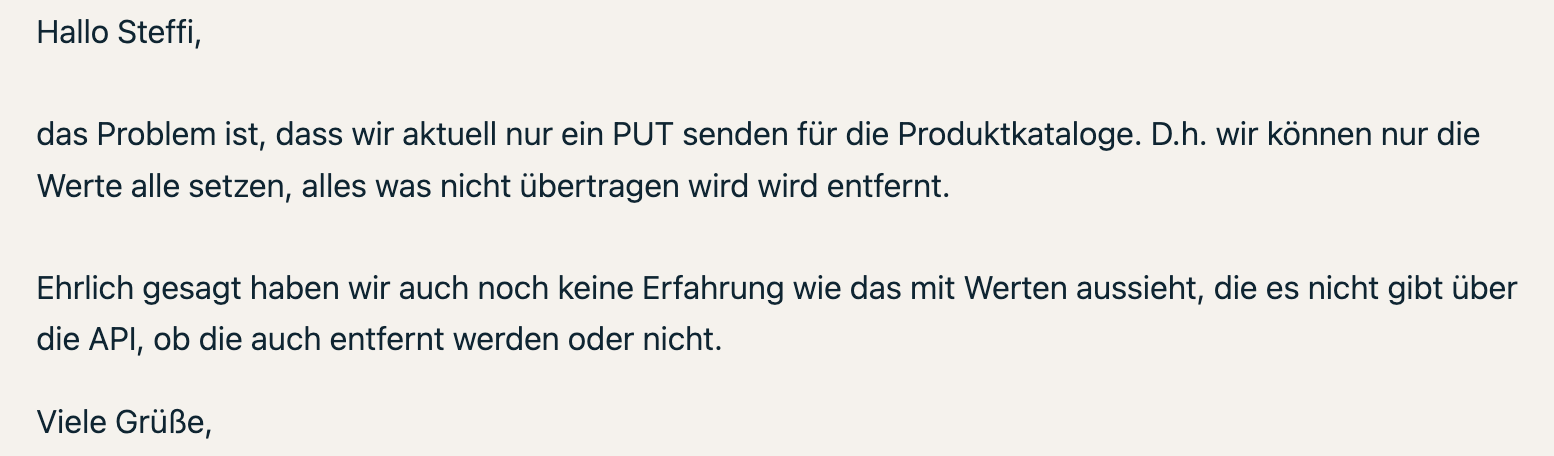 Rückmeldung war dass Bestände zumindest nach wie vor abgeglichen werden, unabhängig davon ob man irgendwelche Kataloge hat. Damit haben wir zumindest über’s Wochenende keine Überverkäufe.