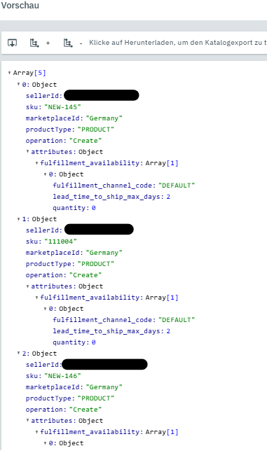 Interessant, leider kann ich dir aktuell nicht sagen weshalb das so exportiert wird, und ob es ein Problem darstellt. Haben deine Produkte denn Amazon SKUs?