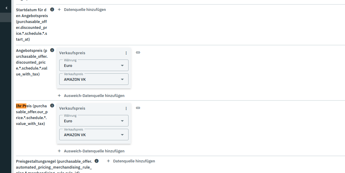 Ihr Preis: Das entsprechende Feld finden wir nicht im Produkt Katalog