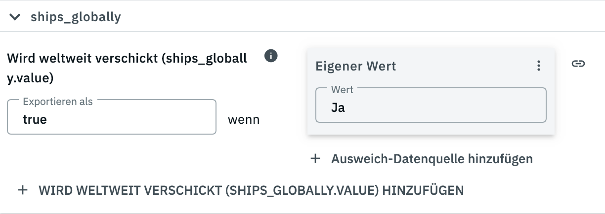 @Thomas_K wenn ihr den Weg geht muss der Exportieren als Wert also “true” auch immer bei Eigener Wert 1 zu 1 identisch sein.