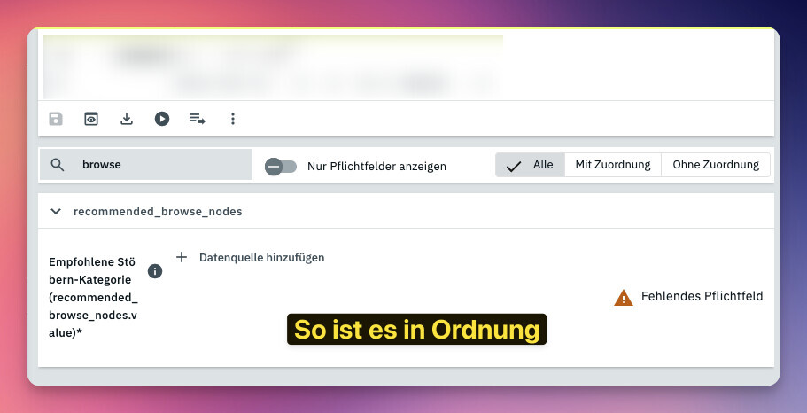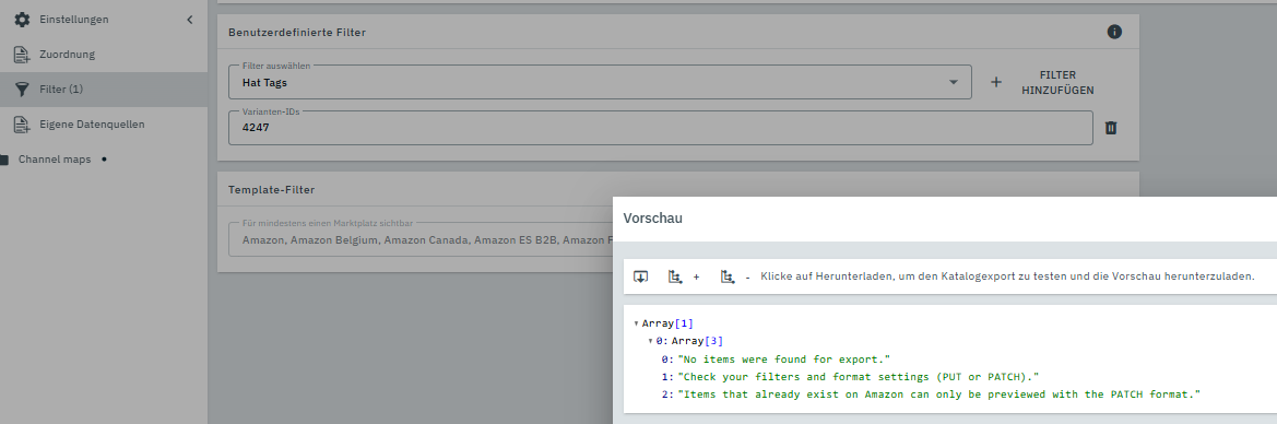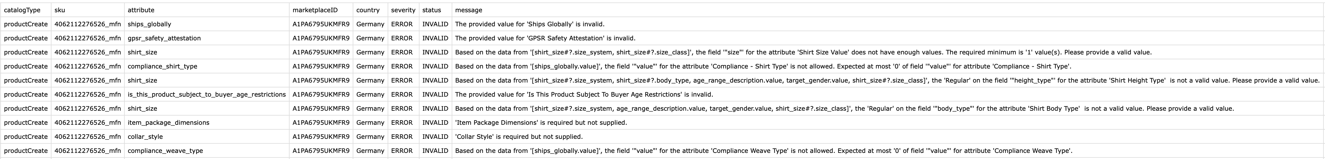 Trotzdem wird kein Artikel angelegt und der Testmodus bringt mir immer wieder die gleichen Fehler über Invalide oder sogar fehlende Daten. Komischerweise sind die benannten Daten aber im Vorschaumodus grün und somit ohne Fehler.
